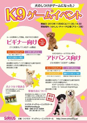 そこで、シリウス主催で、教室のあるアミーゴの前の広場で、K9ゲームイベントを行ないます!!